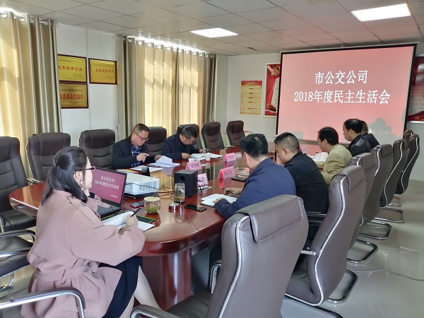 2019年3月18日,市公交公司召開(kāi)了“以強(qiáng)化創(chuàng)新理論武裝,樹(shù)牢‘四個(gè)意識(shí)’,堅(jiān)定‘四個(gè)自信’,勇于擔(dān)當(dāng)作為,以求真務(wù)實(shí)作風(fēng)堅(jiān)決把中央決策部署落到實(shí)處”為主題的民主生活會(huì)。黨委書記、董事長(zhǎng)張曉強(qiáng)主持會(huì)議,市公交公司全體領(lǐng)導(dǎo)班子和黨委委員參會(huì)。市國(guó)資委監(jiān)事會(huì)主席李世吉、副科級(jí)監(jiān)事羅全利到會(huì)指導(dǎo)。
