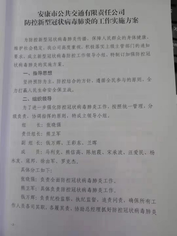 在節(jié)日前夕,公司召開疫情防控工作緊急部署會,成立新型冠狀病毒肺炎防控工作領導小組,部署防控疫情工作,要求各部門要本著“嚴密防控疫情、確保春運安全”的工作思路,全力以赴做好防控工作,發(fā)現(xiàn)問題第一時間上報,保證公交乘車環(huán)境安全。