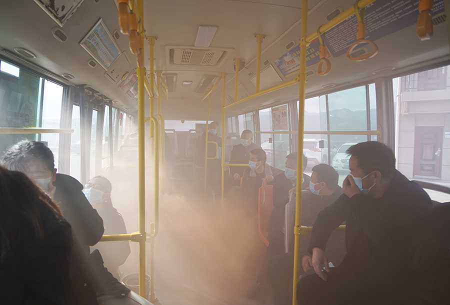 公交車動(dòng)態(tài)安全演練模擬一輛正在行駛中的公交車,駕駛員突然聞到車內(nèi)有異味,發(fā)現(xiàn)車輛尾部發(fā)動(dòng)機(jī)艙在冒煙,駕駛員隨即打開(kāi)緊急雙閃燈,啟動(dòng)車內(nèi)智能監(jiān)控報(bào)警,向公司智能調(diào)度中心報(bào)警,并立即靠邊停車,打開(kāi)前后車門,疏導(dǎo)乘客從前后門有序下車,遠(yuǎn)離車輛。